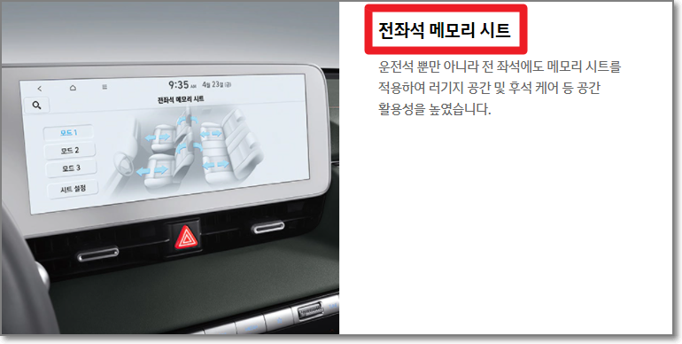 되어있는 모습입니다 게다가 전좌석에 메모리 시트가 적용되어있습니다.