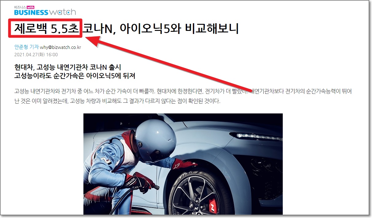 아이오닉 5는 제로백이라고 말하는, 0km~100km/h까지 5.5초로 주파가