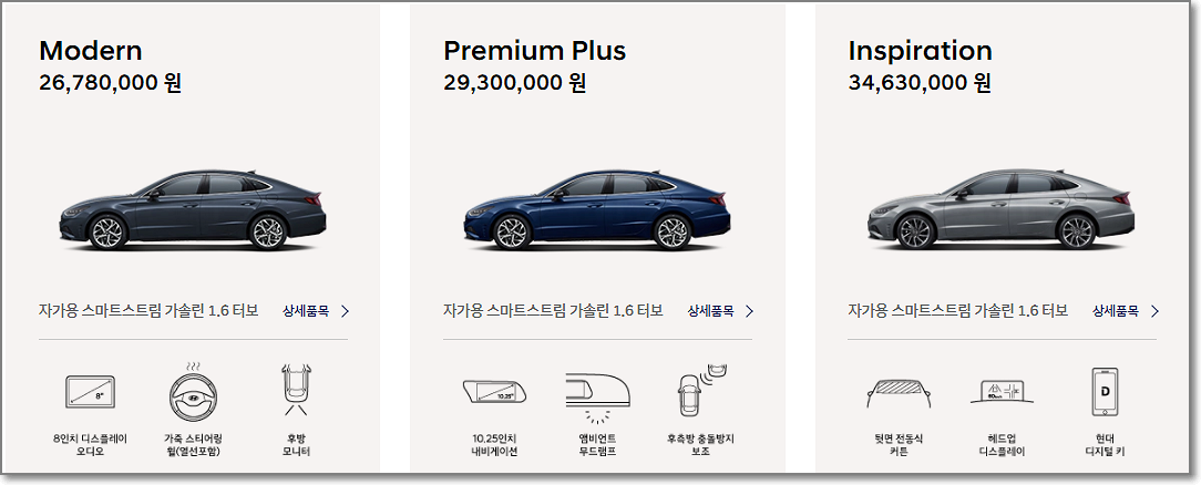 < 2021 쏘나타 센슈어스 왜 안 팔릴까 - 트림별 가격 >